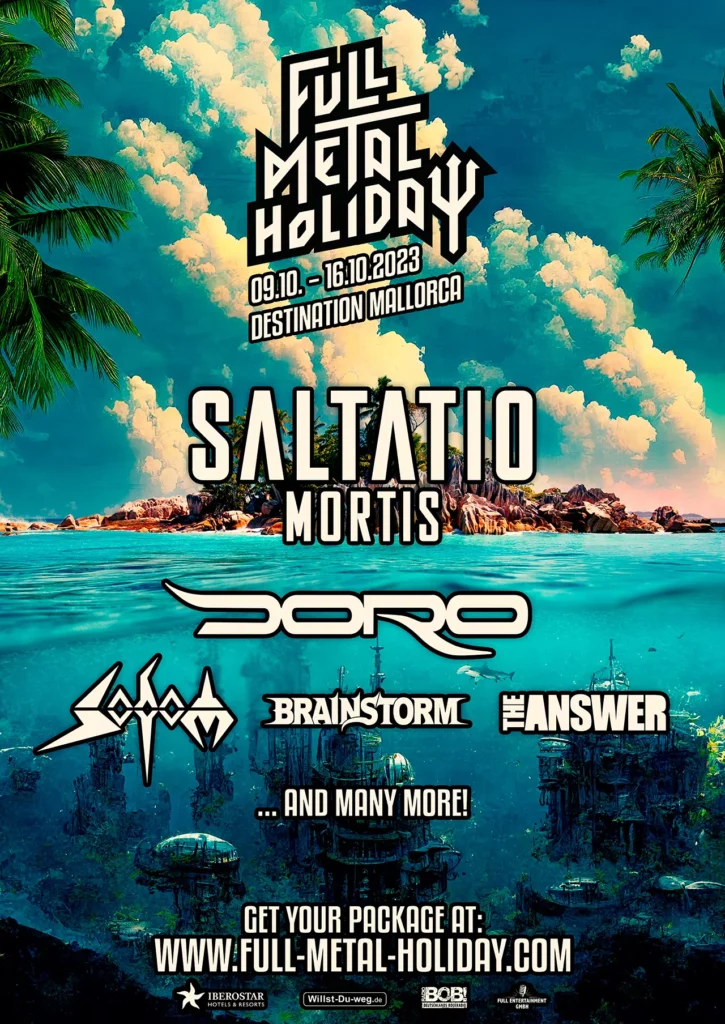 Saltatio Mortis, Doro, Sodom, Brainstorm y The Answer son las primeras bandas confirmadas para la próxima edición del Full Metal Holiday, que tendrá lugar del 9 al 16 de octubre en el Iberostar Club Cala Barca (Santanyí, Mallorca). Más información en https://www.full-metal-holiday.com.