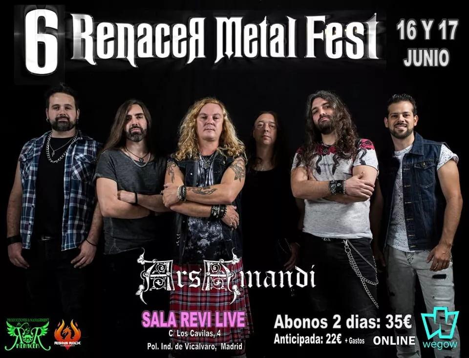 Ars Amandi es la nueva confirmación para la sexta edición del Renacer Metal Fest, que se celebrará los días 16 y 17 de junio en la sala Revi Live (Madrid). Easy Rider y Sacramento también tienen confirmada su participación. Abono de dos días a 35 euros más gastos y entrada de día a 22 euros más gastos en https://www.wegow.com
