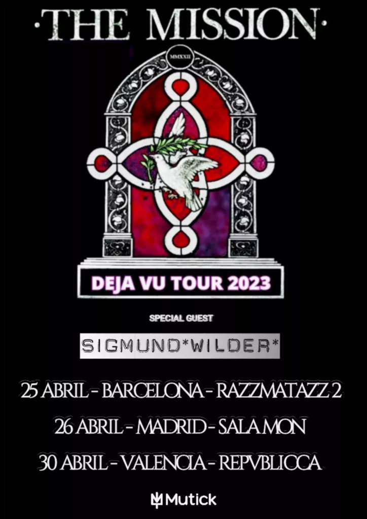 Los barceloneses Sigmund Wilder serán los encargados de caldear el ambiente previamente en la gira española de The Mission, que tendrá lugar a finales de abril. Tras cosechar excelentes críticas de su último álbum Desorden, producido por Santos & Fluren (Blind Records), Sigmund Wilder afrontan el reto y el honor de compartir cartel y escenario con una de sus bandas de referencia. “Para nosotros, abrir los shows de The Mission es simplemente un honor. Ellos son emblema y vanguardia del sonido del rock gótico británico que nosotros veneramos y al que debemos una parte fundamental de nuestro amor por la música”.