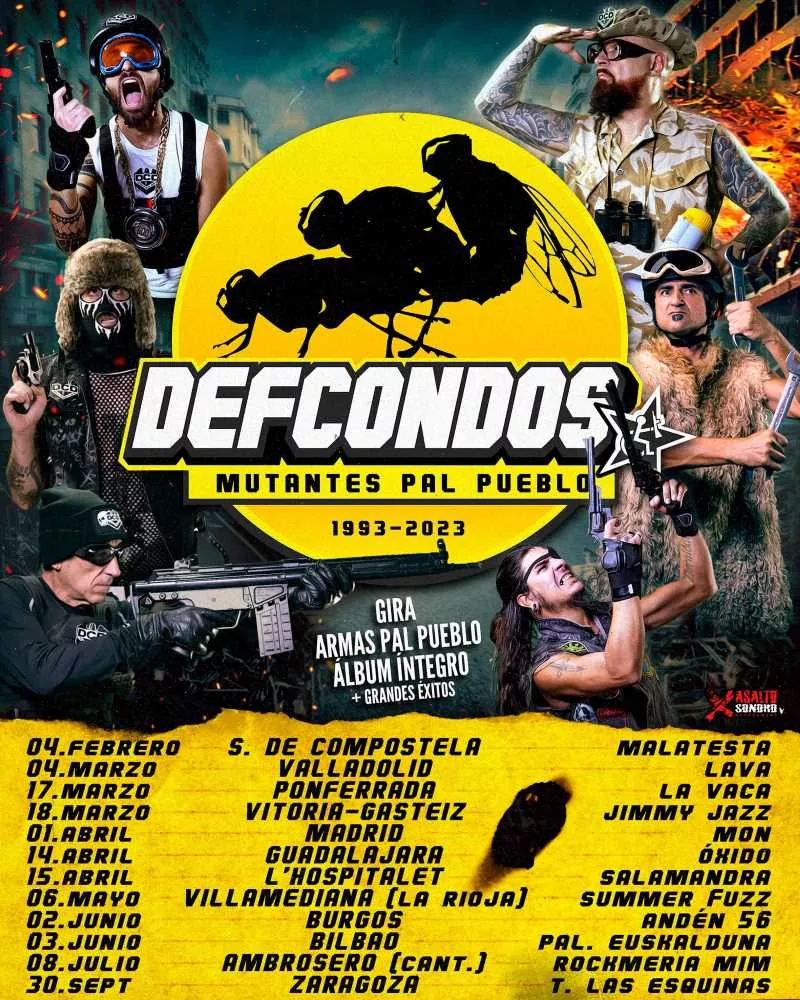 Los madrileños Def Con Dos ya se encuentran inmersos en la gira 30 aniversario del estreno de la película “Acción Mutante” y de su gran disco “Armas Pal Pueblo”. Una gira para no perderse por su particularidad. Siguiendo con las celebraciones ayer la banda estrenó un remix de su archiconocido tema “Ellas Denunciaron”, añadiendo unos matices mucho más electrónicos y la sorprendente aportación de los raperos Machete en Boca.