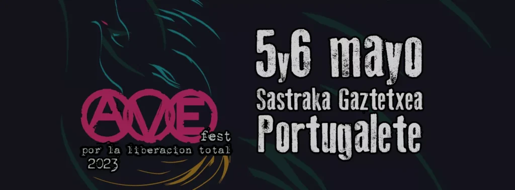 Los días 5 y 6 de mayo se celebrará una nueva edición del Ave Fest en Sastraka Portugaleteko Gaztetxea, con numerosas actividades destinadas a recaudar dinero para el movimiento de liberación. En breve conoceremos las bandas que actuarán en esta nueva edición animal.