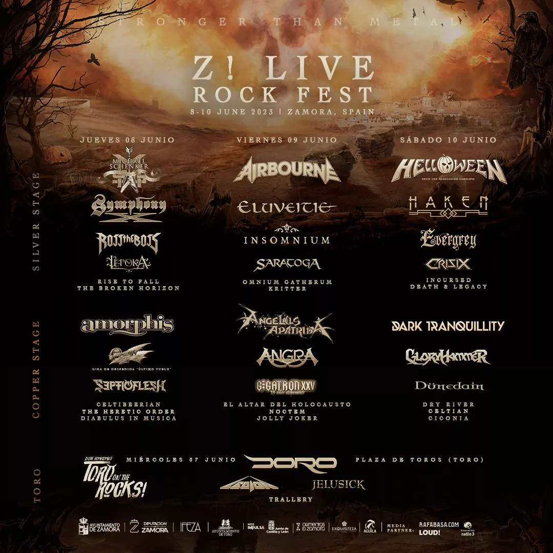 Por supuesto, hemos intentado buscar alternativas como las que tenemos previstas en el recinto de Zamora, pero no ha sido posible encontrar ninguna que cumpla con las condiciones de seguridad que el evento necesita. Ayer teníamos la esperanza de que la previsión mejorase como en los últimos días y fuese posible… pero lamentablemente no ha sido así. Doro, Legion, Jelusick y Trallery estaban ya en Toro listas para actuar, pero no es posible, así que vamos a buscar una nueva fecha para que disfrutéis de sus conciertos. La semana que viene daremos los detalles para la nueva fecha y procedimiento para la devolución de las entradas, bus especial y lanzaderas.