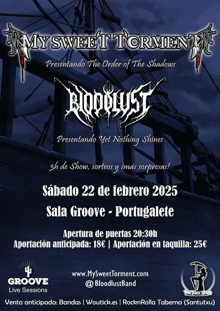 Los bizkainos My Sweet Torment ya han publicado su nuevo trabajo “The Order of The Shadows”, escapándose de los parámetros tradicionales, con un desarrollo inmenso en matices y una excelente combinación de diferentes elementos musicales, representando una sobresaliente evolución en brillantez compositiva, reafirmando las impresiones ofrecidas en trabajos anteriores, mediante el uso de diferentes tesituras, voces líricas, patrones rítmicos progresivos, sinfónicos y death metaleros, creando un universo infinito, consiguiendo que todos los elementos se den de la mano, con una ejecución dinámica que demuestra el alto nivel musical de sus integrantes.