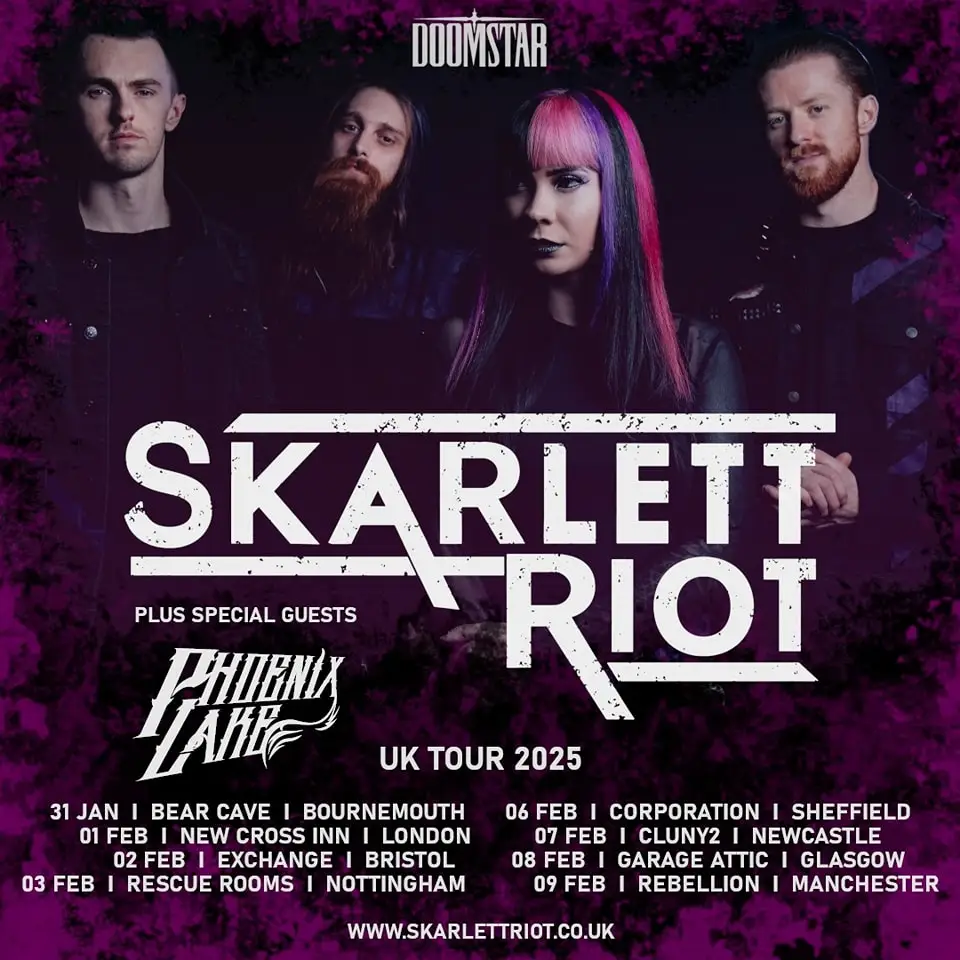 Los británicos Skarlett Riot siguen inmersos en la promoción de su nuevo disco “Caelestia”, que lleva en el mercado desde el pasado 25 de octubre de 2024 a través del sello Despotz Records. Un asentamiento en estilo y personalidad con constantes cambios de ritmo directos y muy elaborados, con estribillos de los que arrasan y unos matices vocales llenos de contrastes y de gran capacidad para adaptarse a cada terreno.