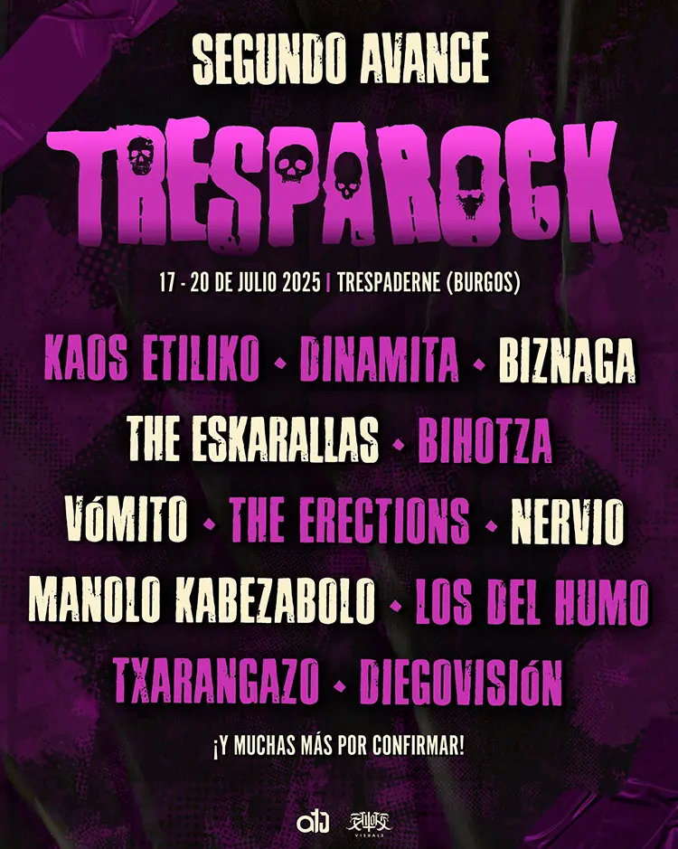 Biznaga, The Eskarallas, Vómito, Nervio y Manolo Kabezabolo se incorporan al cartel de la próxima edición del Tresparock, que se celebrará del 17 al 20 de julio de 2025 en Trespaderne (Burgos). Anteriormente fueron confirmados Kaos Etiliko, Dinamita, Bihotza, The Erections, Los De Humo, Txarangazo y Diegovisión.