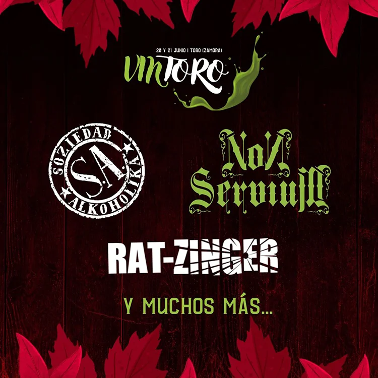 Soziedad Alkoholika, Non Servium y Rat-Zinger son las primeras bandas anunciadas para la próxima edición del festival Vintoro, que se llevará a cabo los días 20 y 21 de junio en Toro (Zamora). Abonos al precio de 43 euros más gastos en https://www.wegow.com