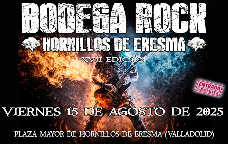 Por motivos ajenos a su volutad, los organizadores del Bodega Rock han tenido que cambiar de fecha para la celebración de la decimo séptima edición del festival. La nueva fecha ha sido fijada para el 15 de agosto en la Plaza Mayor de Hornillos de Eresma (Valladolid).