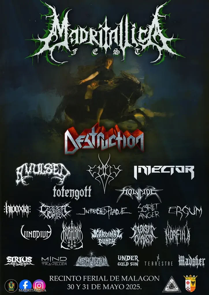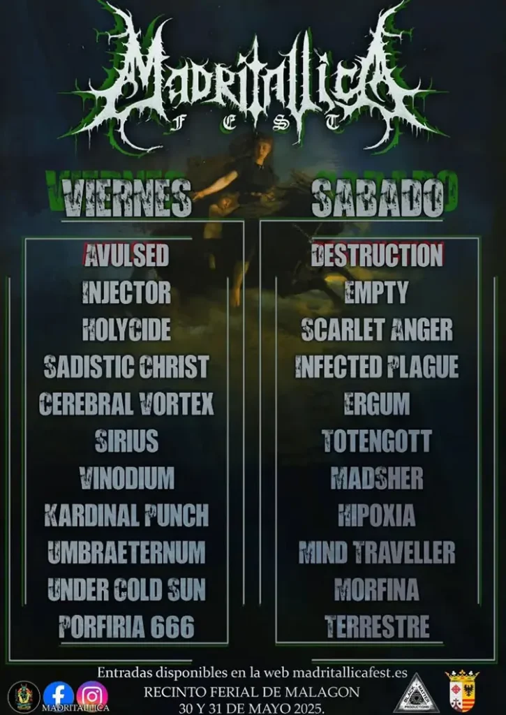 Los organizadores del Madritallica Fest ya han distribuido las bandas por jornadas para la próxima edición del festival, que se llevará a cabo los días 30 y 31 de mayo en Malagón (Ciudad Real). Habrá zona de acampada en la Plaza de Toros de dicha localidad, transporte de ida y vuelta Madrid a Malágon y Ciudad Real a Malagón, feria del disco y un camión con comida dentro del festival.