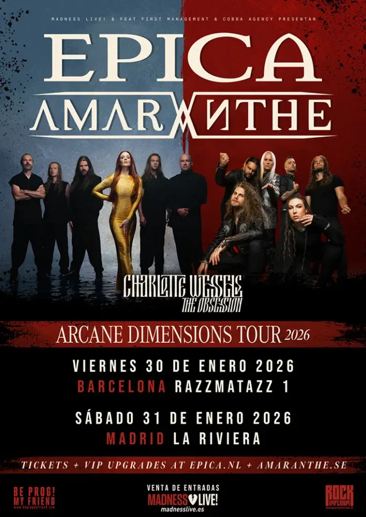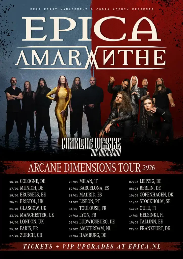 A principios de 2026, los pioneros del metal sinfónico Epica y los gigantes del metal Amaranthe se unirán en su gira europea “Arcane Dimensions Tour”. Con slots de co-headliner rotativos, la gira los llevará a 26 ciudades en 13 países.