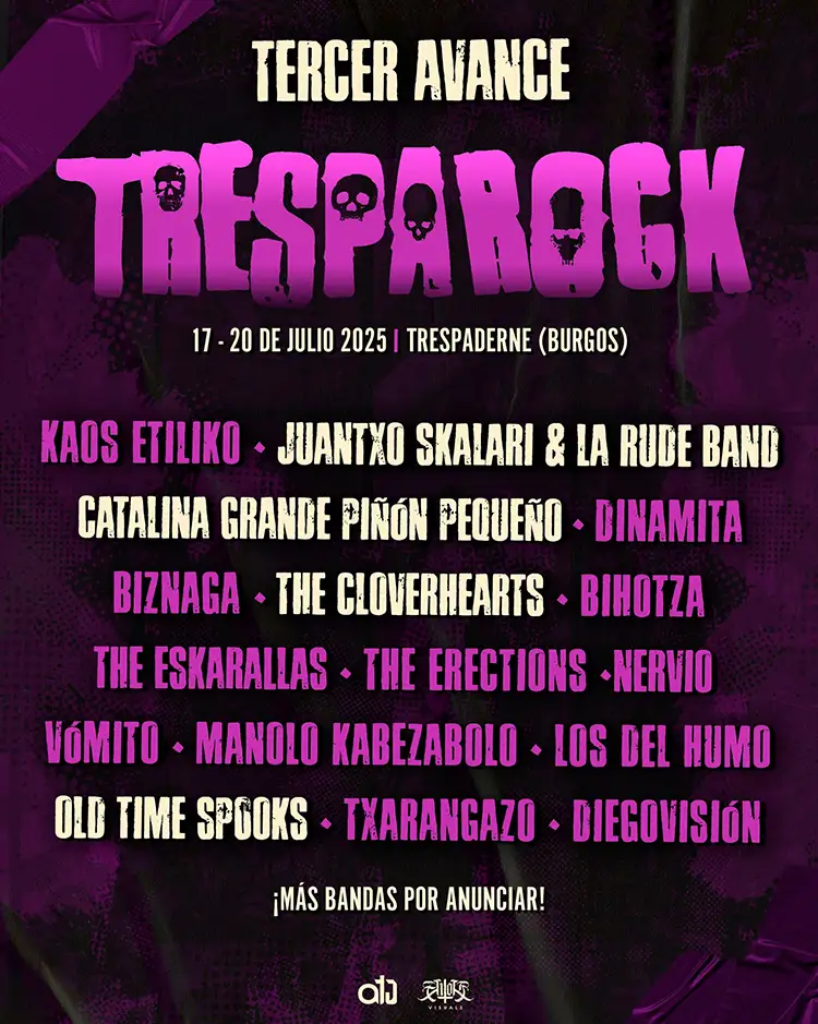 Juantxo Skalari & La Rude Band, Catalina Grande Piñón Pequeño, The Cloverhearts y Old Time Spooks se incorporan al cartel de la próxima edición del Tresparock, que se celebrará del 17 al 20 de julio de 2025 en Trespaderne (Burgos). Abonos a la venta al precio de 45 euros más gastos en https://www.woutick.es