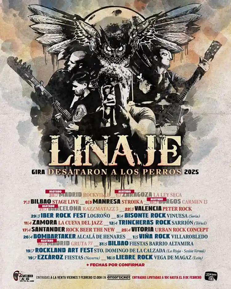 El sello El Dromedario Records lanzó ayer al mercado el disco debut de los navarros Linaje “Desataron a los Perros”, grabado, mezclado y producido en los estudios R-5 de Orikain (Navarra) por Kolibrí Díaz, quien contó con la colaboración de Jesús Martín ‘Txutxín’. Las labores de masterización corrieron a cargo de Chris Gehringeren, y se realizaron en los estudios Sterling Sound de Nueva York.