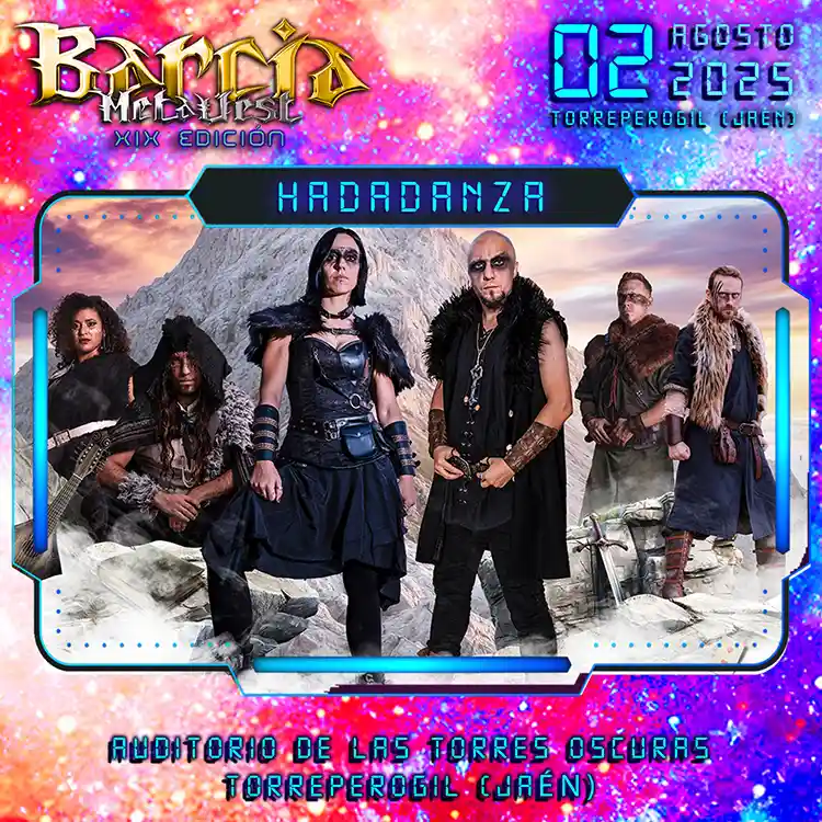 Los alicantinos Hadadanza será otra de las formaciones que participará en la decimonovena edición del Barcia Metalfest, que se celebra el próximo 2 de agosto en el Auditorio Torres Oscuras, Torreperogil (Jaén). Folk metal circense, con contrastes para generar emociones, entre fuerza y delicadeza. La formación presentará su último disco «Aventura y Leyenda», un disco conceptual con el que se viaja al interior de uno de los libros más conocidos, aclamados y queridos por los fans de la fantasía, «El Hobbit» del ilustre escritor J. R. R. Tolkien. Dos entregas, siendo esta la primera de ellas.