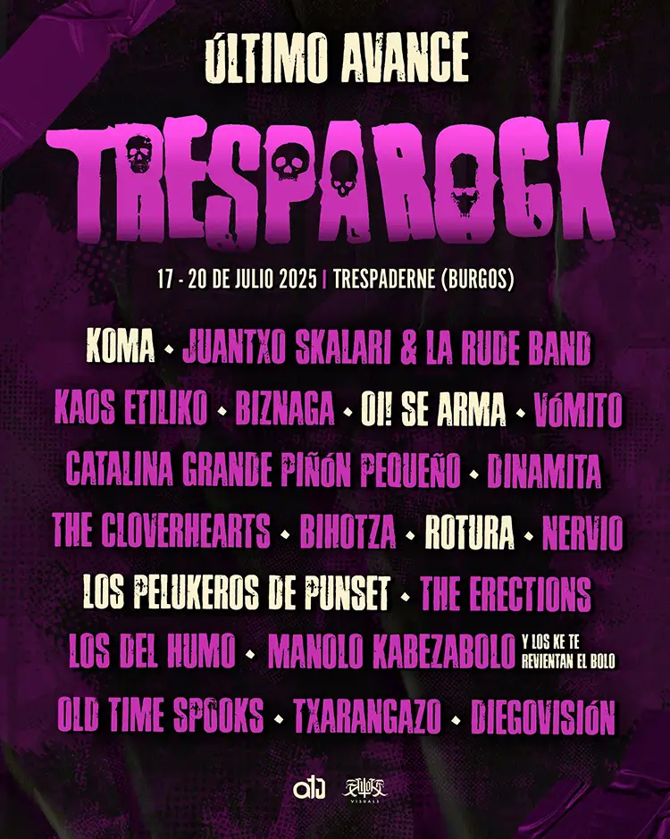 Koma, Oi! Se Arma, Rotura y Los Pelukeros de Punset completan el cartel de la próxima edición del Tresparock, que se celebrará del 17 al 20 de julio de 2025 en Trespaderne (Burgos). Abonos a la venta al precio de 45 euros más gastos en https://www.woutick.es