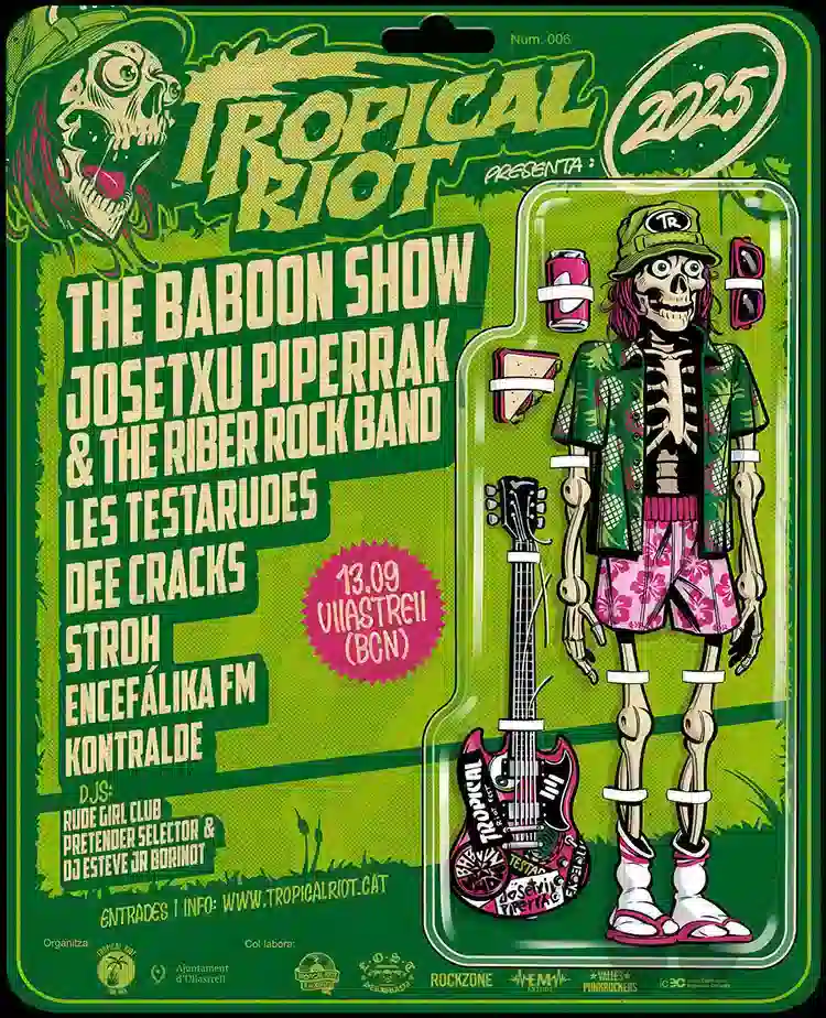 La asociación Tropical Punks organiza para el día 13 de septiembre la sexta edición del festival Tropical Riot, con las actuaciones de The Baboon Show, Josetxu Piperrak & the Riber Rock Band, Les Testarudes, Dee Cracks, Stroh, Encefálika FM y Kontralde en Ullastrell (Barcelona). Un festival de punk rock con cerveza artesana, diferenciándose notablemente de los macrofestivales. Entradas a la venta en https://www.tropicalriot.cat