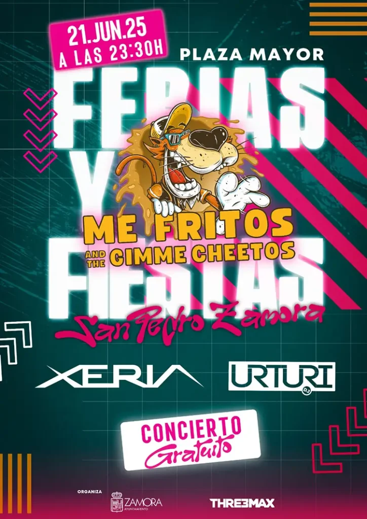 El grupo de rock metal melódico Xeria estará actuando este sábado 21 de junio en la Plaza Mayor de Zamora con motivo de la celebración de las fiestas patronales de la localidad. El concierto comenzará a las 23:30 y contará con la actuación, en primer lugar, de Xeria, seguidos de Me Fritos and Gimme Cheetos y de Urturi Dj para cerrar una noche de buena música y buen ambiente.
