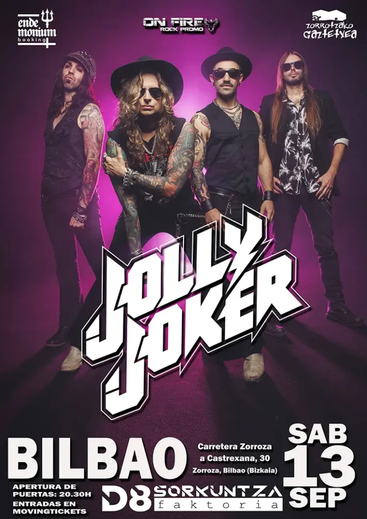 Los valencianos Jolly Joker llevan desde el 2009 enarbolando con fuerza la bandera del Hard Rock y el Sleaze. Esto les ha permitido llegar a ser la banda del estilo más importante en nuestro país, con incontables actuaciones por toda la península y varias giras británicas en su haber.