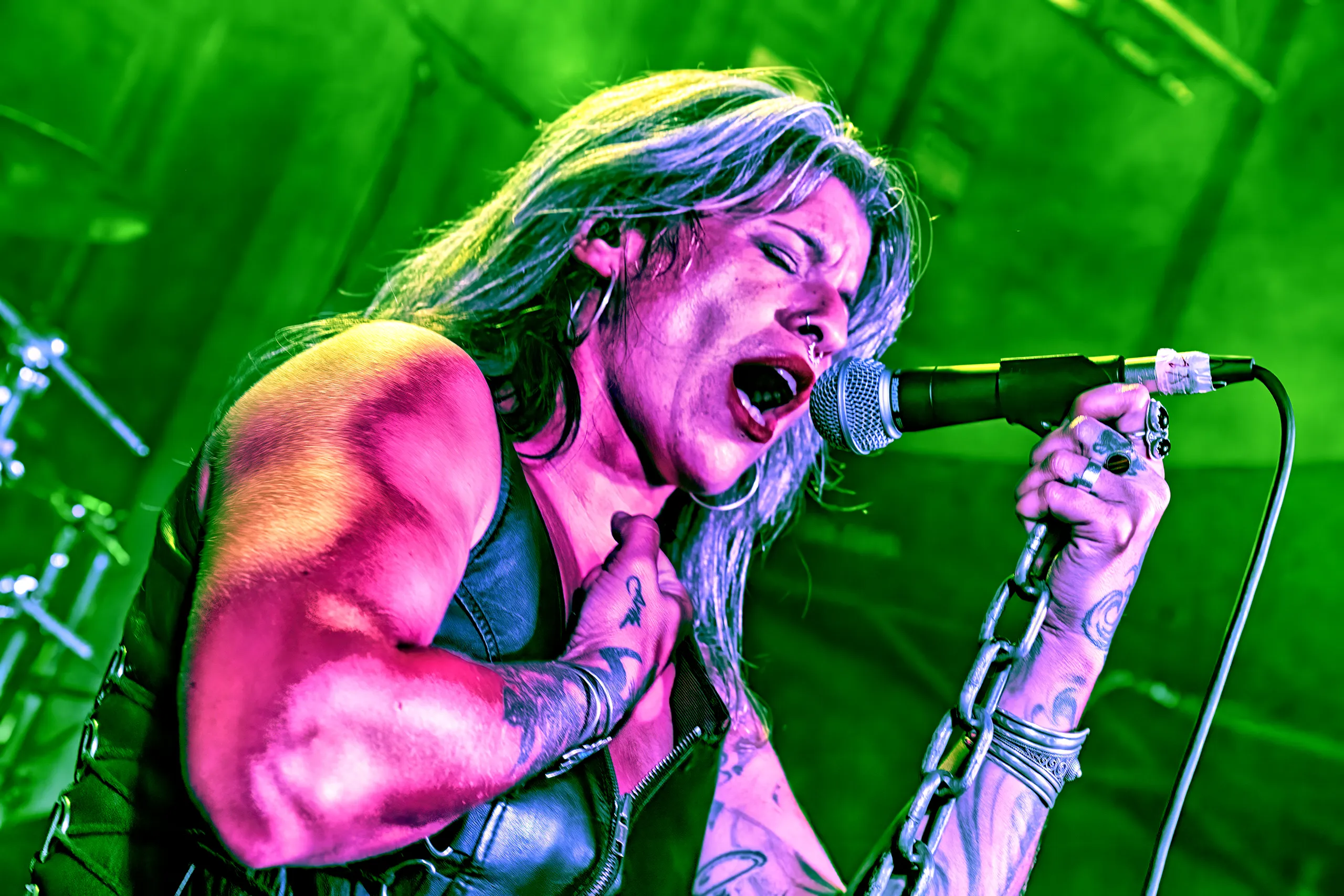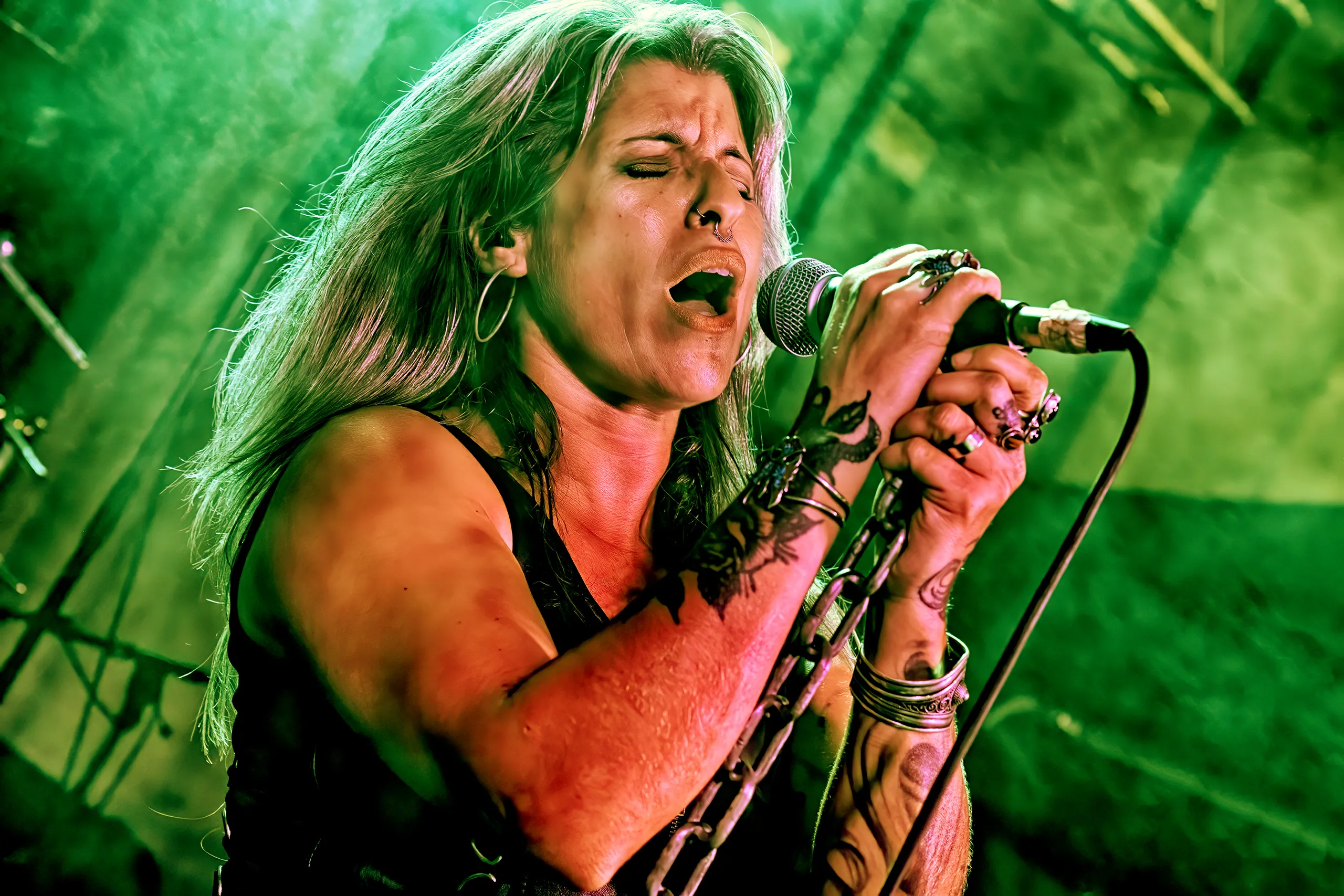 La conmovedora “Viviendo en tu Mentira”, una canción sincera que refleja la incertidumbre de la vida, los problemas, el dolor y la importancia de volver a respirar y superar la debilidad emocional tras un fracaso, dio paso a que la vocalista se lanzara a pedir al público que respondiera junto a ella en “Ojo por Ojo”, fuerza y melodía en equilibrio, sin virtuosismo vacuos, subrayando mejor que nunca en su conjunto todo el trabajo rítmico, abogando por la tradición del estilo con grandes estribillos.