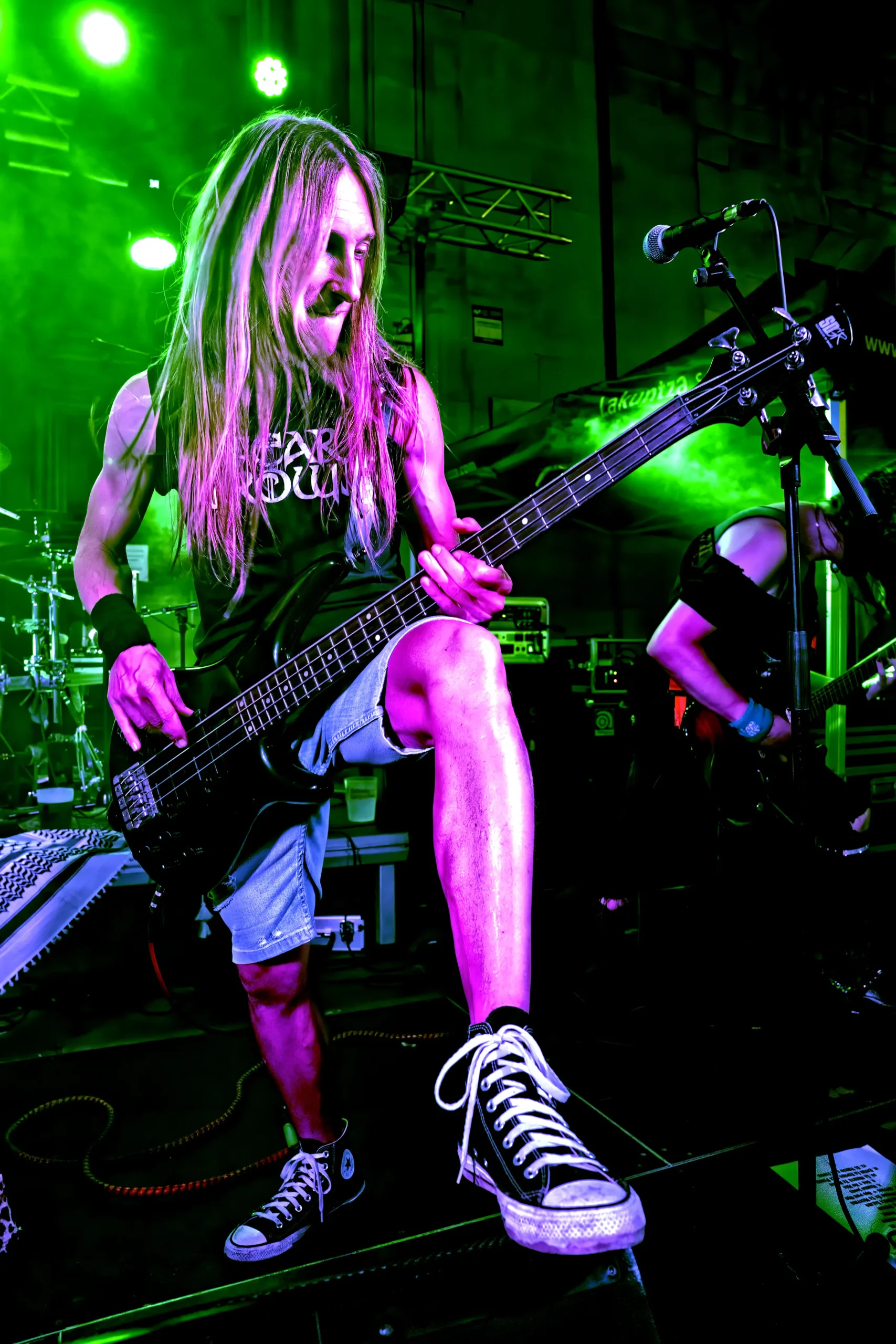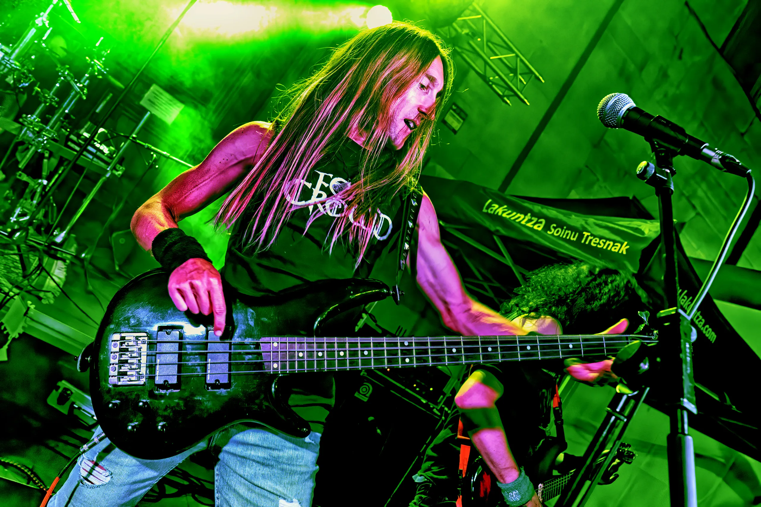 Siguiendo con la linea de la descarga la banda terminó enganchando de forma directa, con la fuerza del heavy metal en ritmos y guitarras, arreglos y bases mucho más aguerridas y apetecibles para cualquier seguidor del clásico heavy metal en castellano de tinte ochentero, destacable el single “Marko Jones”, dedicada a una persona que dejo huella en la vida de muchos, Markos, la brillante “Entre la Espada y la Pared”, con estribillos que van buscando llevarse al personal de calle a las primeras de cambio, sabiendo jugar con otro tipo de sensabilidades en “La Muerte te Busco” y presentando en primicia dos composiciones que irán incluidas en su próximo disco, “Una y No Más” y “El Viento a mi Favor”, impregnado esta última de un desarrollo instrumental muy meritorio, explotando una vena más rockera, un chute de buen rollo y optimismo, consiguiendo en parte huir de lo más típico en el estilo.