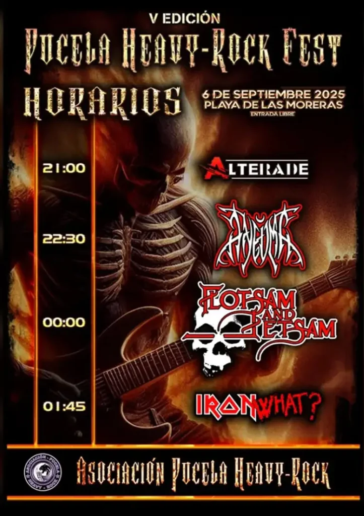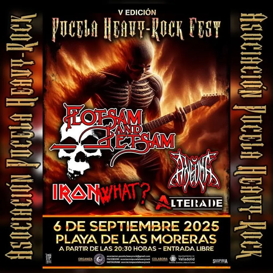 Este sábado se celebrará la quinta edición del Pucela Heavy-Rock Fest en la Playa de las Moredas (Valladolid), encabezada por la banda estadounidense de thrash metal Flotsam & Jetsam. Con más de quince trabajos a sus espaldas, la formación ofrecerá un espectáculo con temas de su último disco “I Am The Weapon” (2024) y un montón de clásicos como ya hicieran en 2019 cuando visitaron Pucela por primera vez. El resto de bandas que participarán son las siguientes: Alterade, Aneuma e Iron What (tributo a Iron Maiden). Os facilitamos los horarios de las actuaciones.