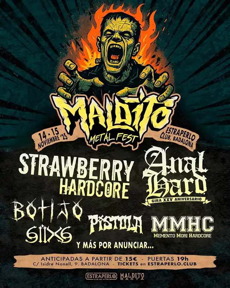 Mala Hostia, Pycaya y Radit son las últimas incorporaciones al cartel de la segunda edición del Maldito Metal Fest, que tendrá lugar los días 14 y 15 de noviembre en el Estraperlo Club (Badalona), donde la tralla se convertirá en religión. Esta nueva edición cuenta también con la incorporación de un anfitrión muy peculiar, un Frankenstein diferente almonstruo clásico que ya todos conocemos, mezclando terror y humor en redes sociales, mostrando su lado más cotidiano y cañero. Dos días de hardcore, thrash, punk y metal en los que Badalona se convertirá en la capital del pogo.