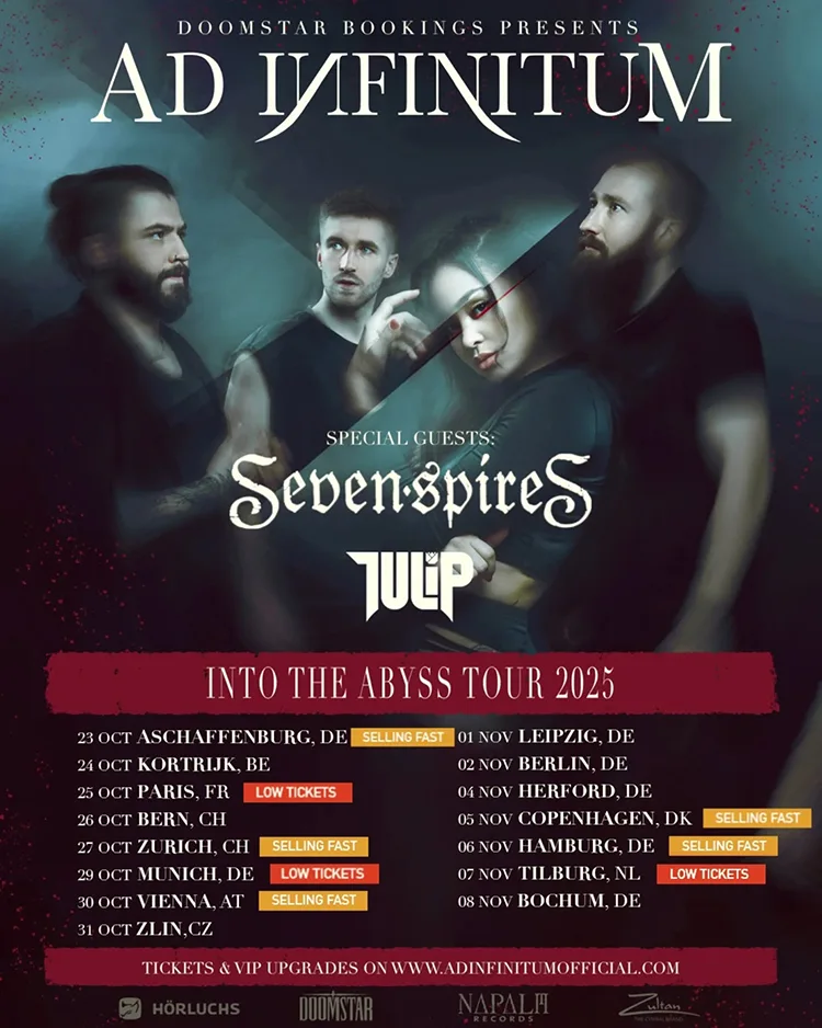 La banza suiza Ad Infinitum ha querido tener un gran detalle con sus seguidores antes de empezar su nueva gira europea como cabezas de cartel, estrenando una nueva canción “Regicide”, la cual fusiona los oscuros paisajes sonoros de su último disco “Abyss”, con una energía más audaz y rebelde. Esta nueva composición vuelve a poner de manifiesto las extraordinarias habilidades vocales de Melissa Bonny, combinando sensibilidades pop, riffs modernos, ritmos precisos y melodías contagiosas, demostrando una vez más la posición de la banda a la vanguardia de su género.