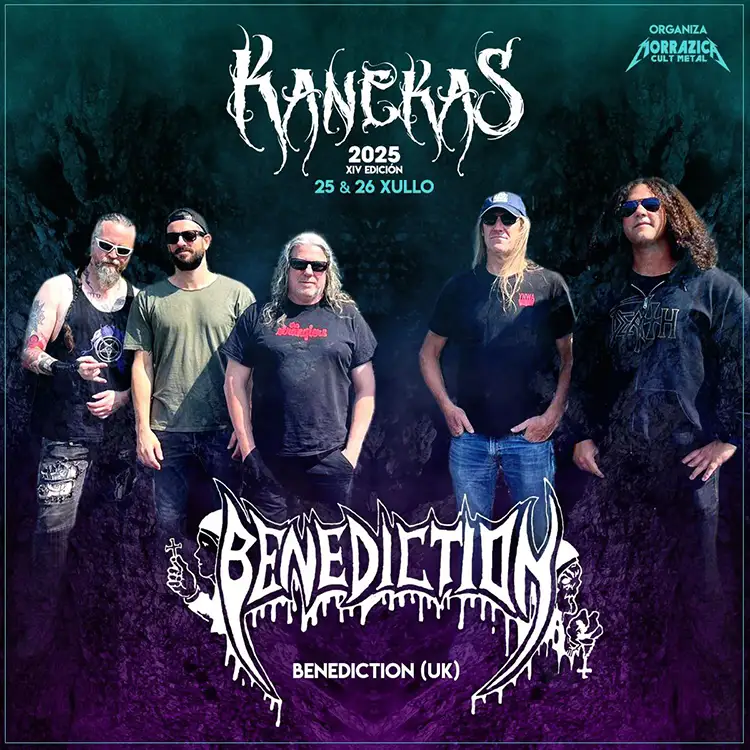 La banda británica de death metal Benediction será otra de las formaciones que participará en la decimocuarta edición del Kanekas Metal Fest, que se celebrará los días 25 y 26 de junio de 2025 en la Explanada de Ojea (Cangas do Morrazo, Pontevedra).