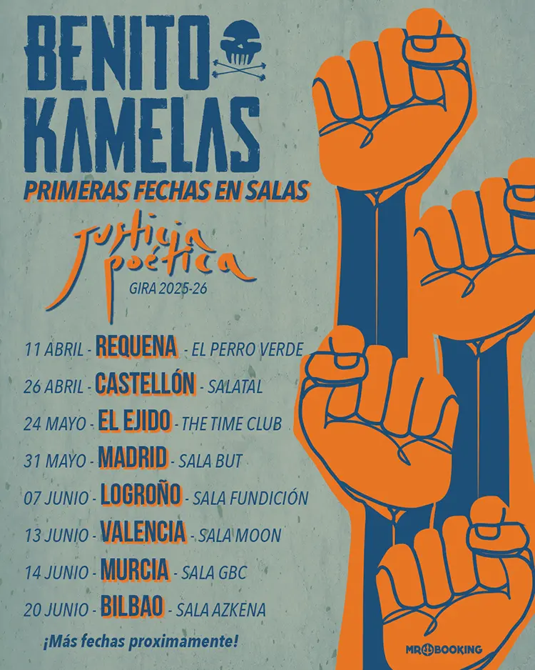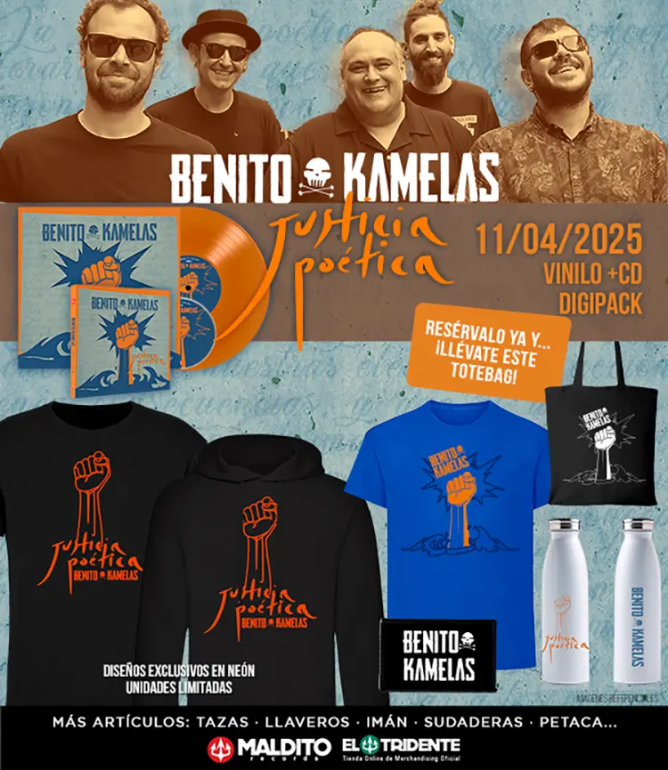Los valencianos Benito Kamelas siguen demostrando que su música es un grito de libertad y sentimiento, conquistando a nuevas generaciones sin olvidar a sus fieles seguidores. Tras el éxito del primer adelanto de su esperado nuevo álbum, “Justicia Poética”, a la venta el 11 de abril a través del sello Maldito Records, la formación regresa con una sorprendente versión de “Vida Loca”, el clásico de Francisco Céspedes, llevándolo a su terreno con su inconfundible estilo.