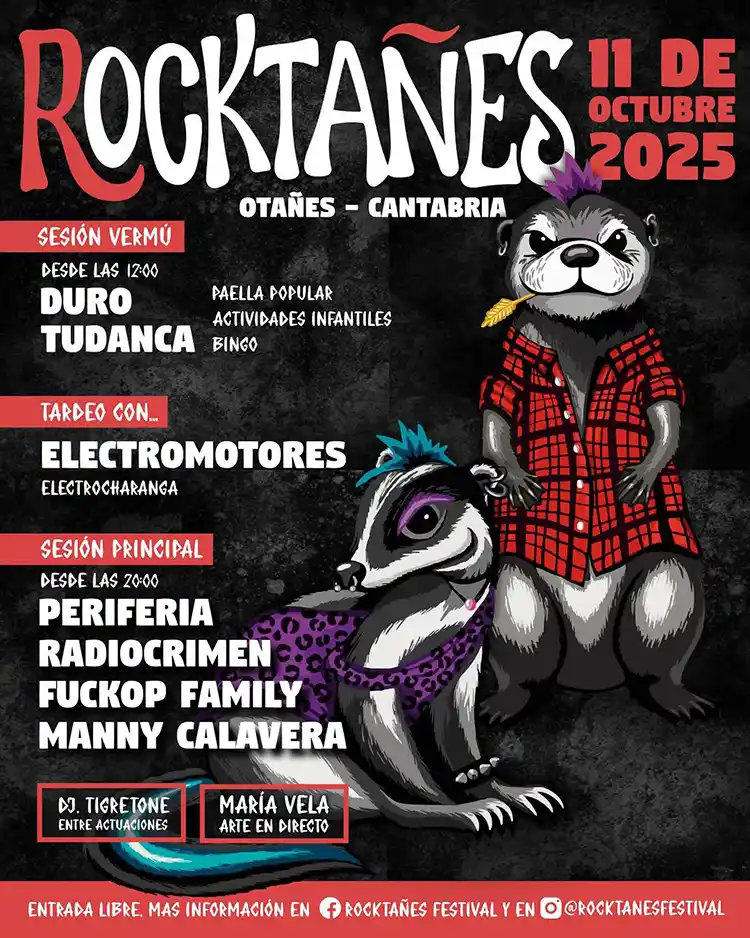 La Asociación Musical Rocktañes ya ha dado a conocer el cartel de la próxima edición del Rocktañes Festival, que tendrá lugar el 11 de octubre en la Plaza del Pueblo de Otañes (Castro Urdiales, Cantabria). Las bandas que participarán son las siguientes: