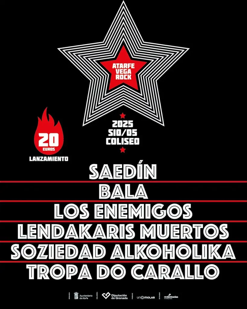 El 10 de mayo de 2025 se celebrará una nueva edicióndel legendario Festival Atarfe Vega Rock en el Coliseo de Atarfe (Granada). Las bandas que participarán son las siguientes: Tropa do Carallo, Soziedad Alkoholika, Lendakaris Muertos, Los Enemigos, Saedín y Bala. Las primeras 500 entradas están ya disponibles por solo 20 euros más gastos de gestión en: https://www.redentradas.