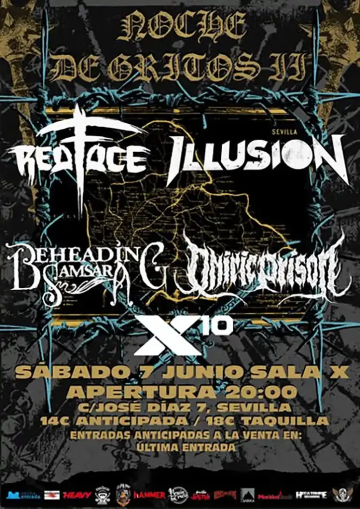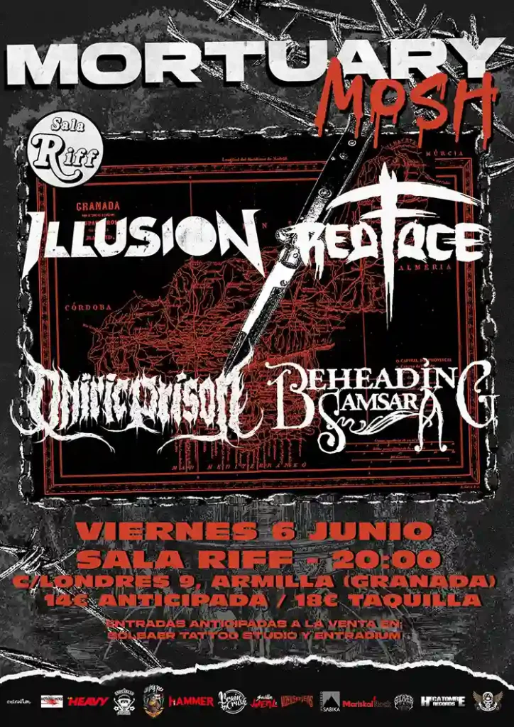 Illusion (Thrash Metal): banda de la periferia de Barcelona. Tras formarse en 2017 publican su primer EP ‘Liberty For Sale’ en 2018. A finales de 2022 publican su primer LP, “Born In Technology”, producido junto a Víctor Valera (Angelus Apatrida). En 2025 lanzan su segundo LP, “Stages Of Self-Destruction”, en el que se muestra una faceta más completa y compleja de la música que la banda es capaz de producir.