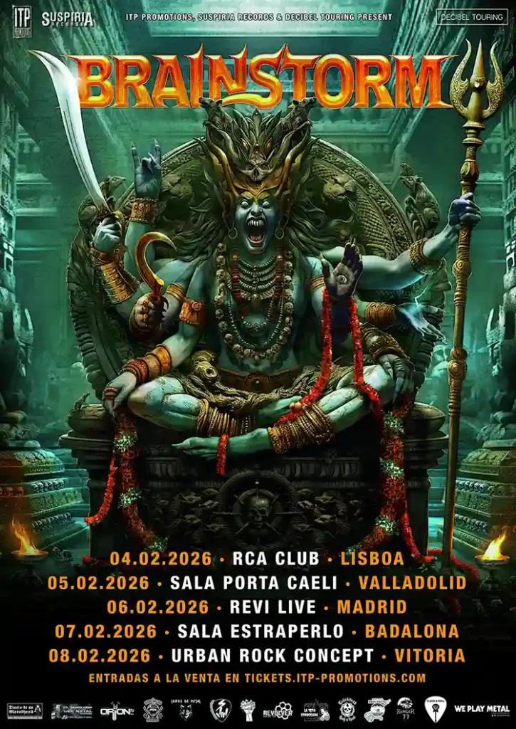Los alemanes Brainstorm llevarán a cabo una pequeña gira por nuestro país a principios de febrero de 2026, para presentar su último disco “Plague Of Rats”  en el que han retomado la historia de Shiva iniciada en su álbum “Soul Temptation”, combinando muchas de sus señas de identidad con influencias recientes y modernas. Brainstorm es una de las bandas más respetadas del power metal alemán, con una trayectoria marcada por un estilo inconfundible, giras exitosas y una base de fans fiel en todo el mundo. Desde sus inicios han crecido paso a paso, consolidando su sonido con la llegada de Andy B. Franck y el éxito de Metus Mortis (2001).