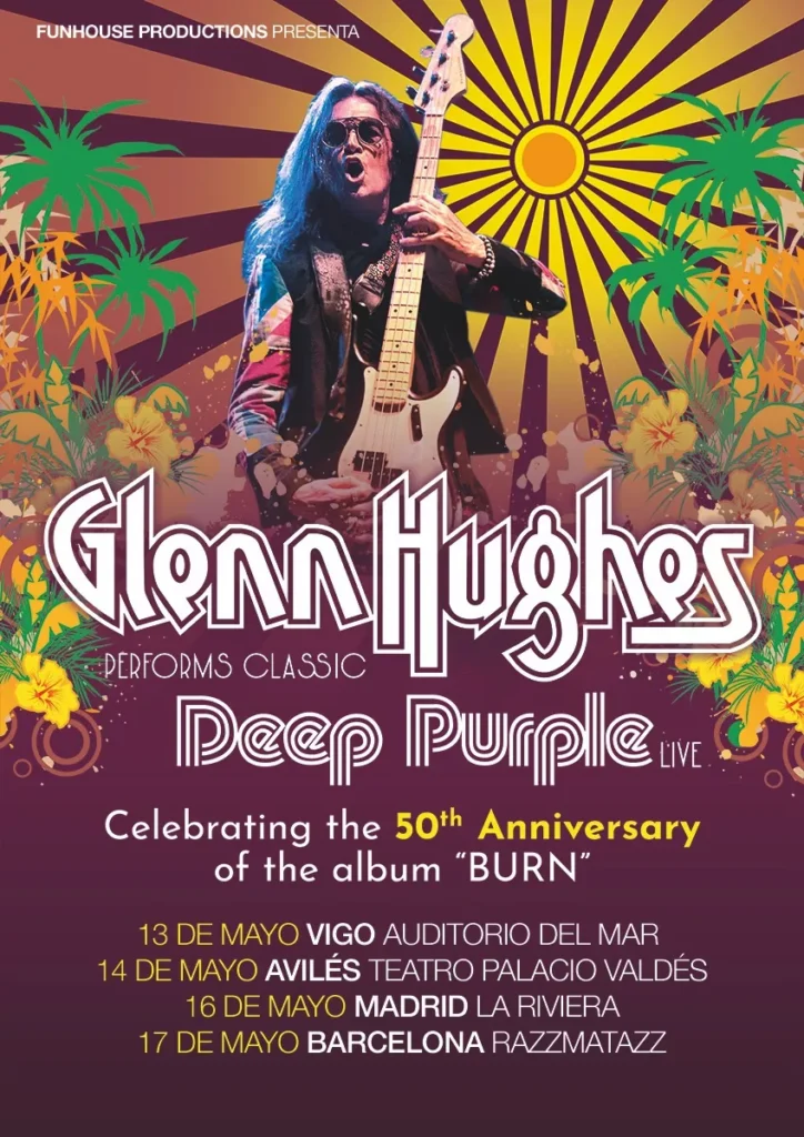 Glenn Hughes (The Dead Daisies) ofrecerá cuatro actuaciones en nuestro país dentro de su gira 50 aniversario del clásico disco “Burn” de Deep Purple, “Glenn Hughes performs Classic Deep Purple Live”, interpretando en su totalidad dicho legendario álbum y una colección de grandes éxitos de la banda en cuestión.