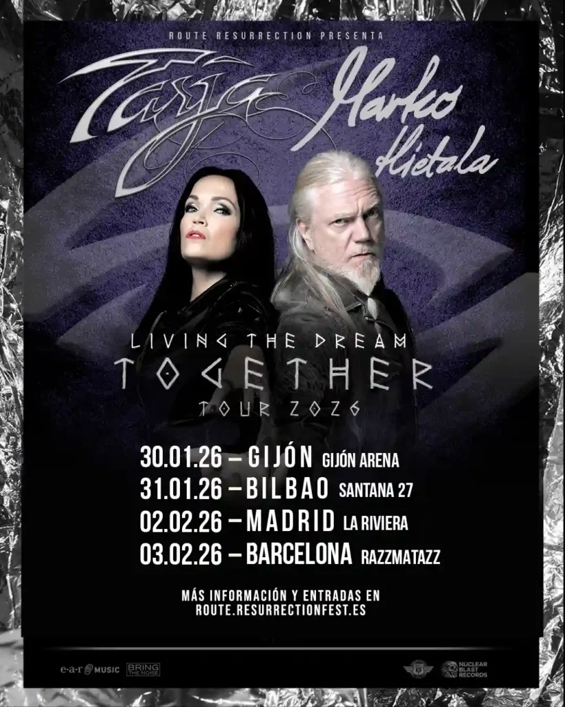 Esta gira, bautizada como «Living The Dream Together Tour 2026», contará con un concierto de cada uno de los dos artistas finlandeses con sus mejores temas en solitario, pero también tendrá grandes clásicos de Nightwish seleccionados por Tarja y Marko. Y eso no es todo, porque además se podrá disfrutar de alguna que otra versión que seguro que cogerá por sorpresa a muchos fans.