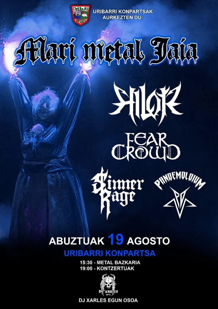Hilotz, Fear Crowd, Sinner Rage y Pandemoldium compartirán escenario en la cuarta edición del Mari Metal Jaia, que se llevará a cabo el 19 de agosto en Urribarri Konpartsa, en plena Aste Nagusia de Bilbao. Gratis. 19:00 horas. Previous Post Abismo estrena videoclip "Romper el Plan" Next Post Deaf Devils estrena videoclip "Lucyfer"