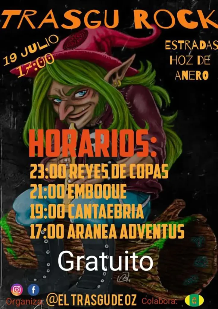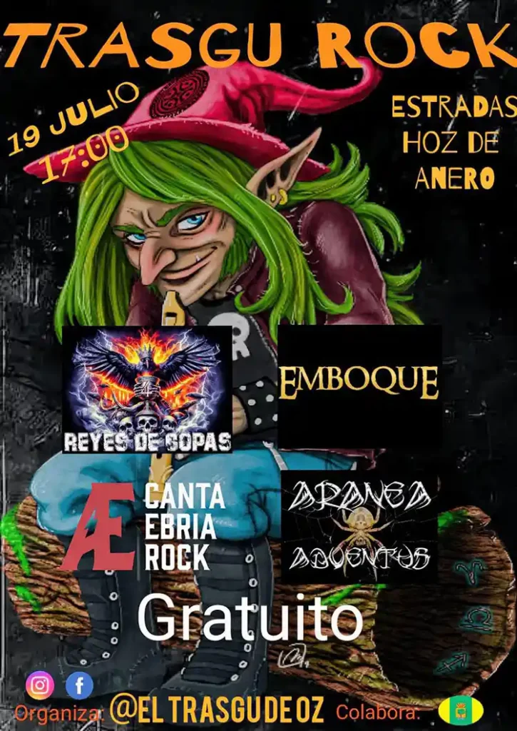 Emboque. Aranea Adventus, Cantaebria y Reyes de Copas compartirán escenario este sábado en la nueva edición del Trasgu Rock, que tendrá lugar en Estradas Hoz de Anero (Cantabria). Entrada libre. Ya están disponibles los horarios de las actuaciones. Previous Post Horarios de la nueva edición del Tin&Rock Next Post En unos días arranca la cuarta edición del RockLand Art Fest
