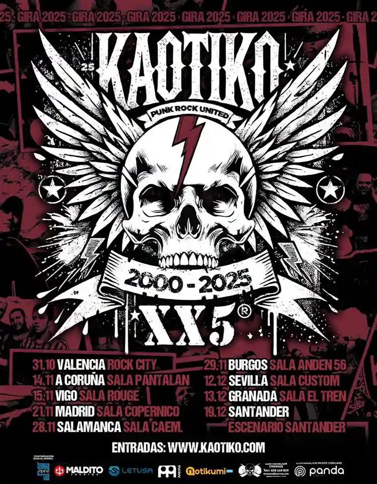 Los alaveses Kaotiko siguen inmersos en la celebración de sus 25 años de trayectoria musical, con una gira llamada “XX5”, en la que interpretan sus temas clásicos regrabados y con sonido renovado. Os damos a conocer sus próximas descargas por salas.