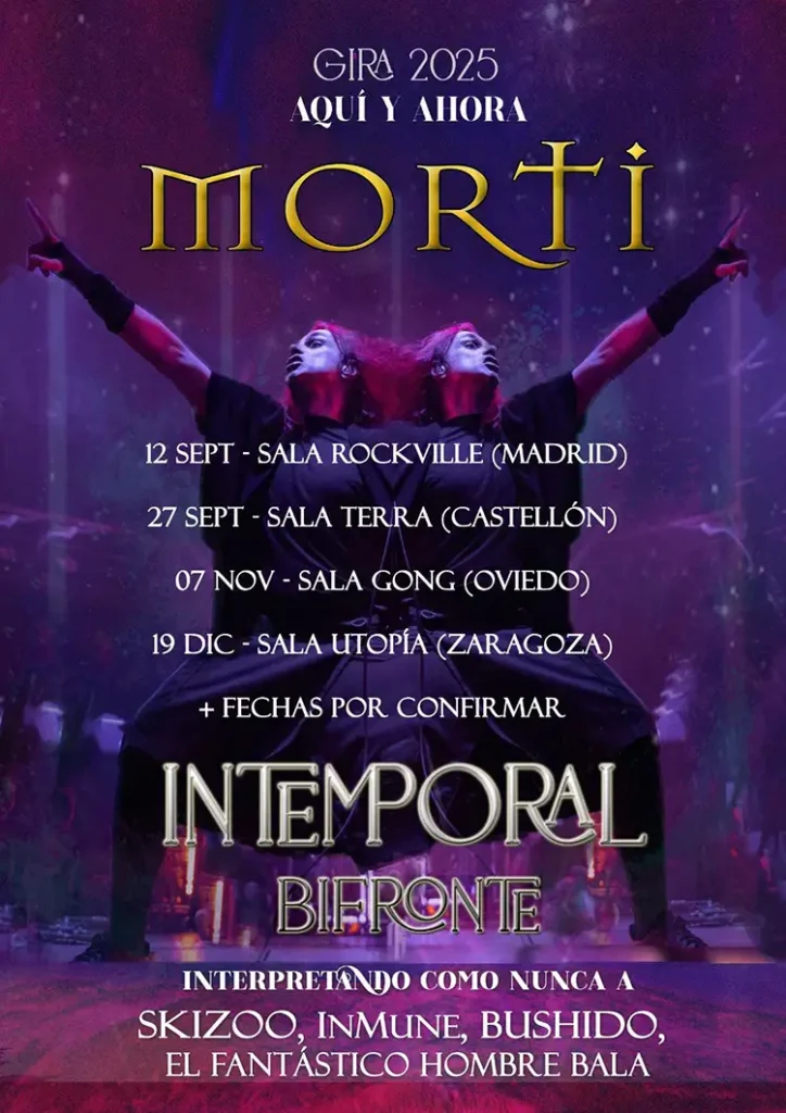 La promotora Oliskull anuncia la esperada gira “Intemporal” del inconfundible artista Morti, quien llevará a los escenarios una reinterpretación única de los grandes temas de su carrera con Skizoo, InMune, Bushido y El Fantástico Hombre Bala.