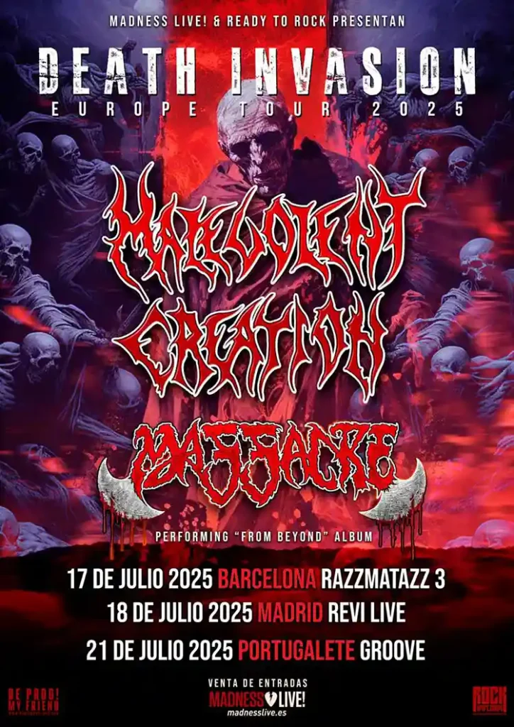 Como invitado especial en esta gira, Massacre, pioneros del death metal de Florida, se unirán a la velada con un set especial en el que interpretarán su icónico álbum ‘From Beyond’ en su totalidad. Con sus raíces en la escena de los 80 y miembros que formaron parte de Mantas y Death, la banda ha resurgido con energía renovada en los últimos años. Su quinto álbum de estudio, ‘Necrolution’, lanzado en noviembre de 2024 bajo Agonia Records, demuestra que su old school death metal sigue tan implacable como siempre.
