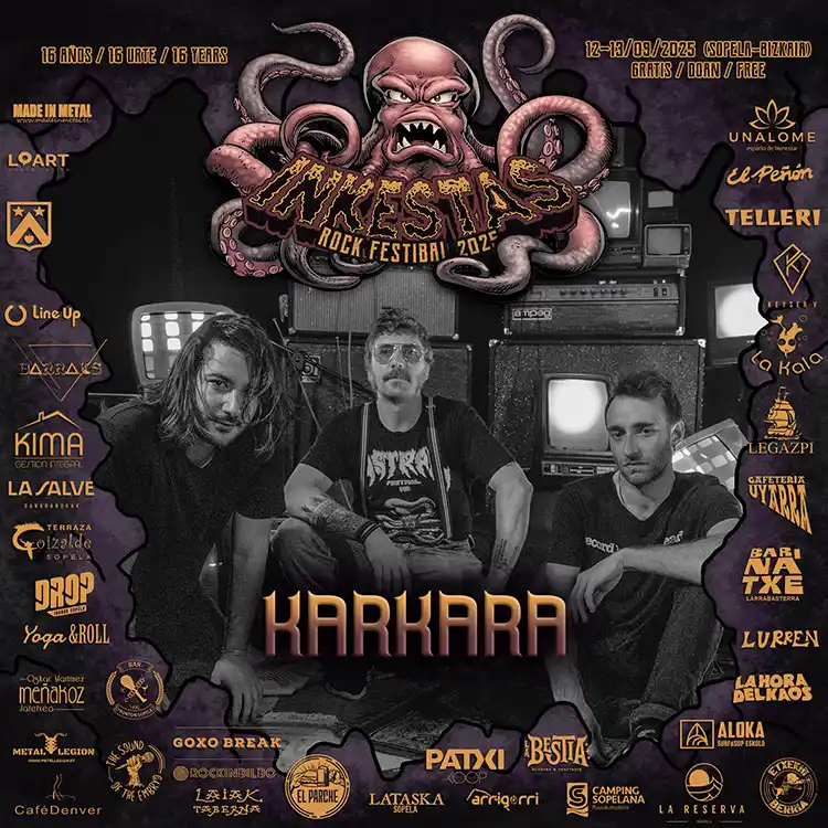 Karkara será otra de las formaciones que actuará en la decimosexta edición del Inkestas Rock Festibal, que tendrá lugar los días 12 y 13 de septiembre en la Plaza Urgitxieta de Larrabasterra (Sopela, Bizkaia).