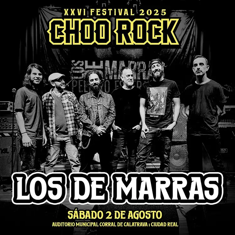 Los de Marras y Sôber son las bandas confirmadas a día de hoy para la vigésimo sexta edición del ChooRock Festival, que tendrá lugar el 2 de agosto en el Auditorio Municipal Corral de Calatrava (Ciudad Real). Entradas anticipadas al precio reducido de 18 euros en https://www.wegow.com