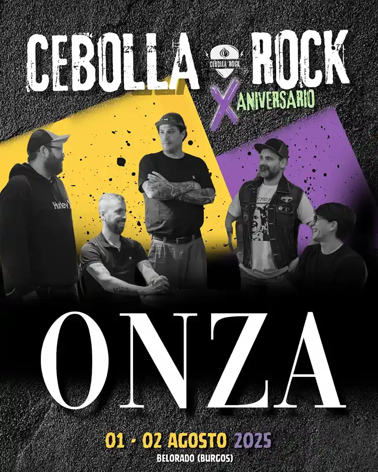 Onza se incorpora a los anteriormente anunciados Los Del Humo, Kamikazes y Karne Cruda en el cartel de la décima edición del Cebolla Rock, que se llevará a cabo los días 1 y 2 de agosto en Belorado (Burgos). Onza es un quinteto asturiano de rock-hc liderado por Pepo, el que fuera cantante de Desakato. Para este proyecto se ha rodeado de componentes de conocidas bandas de la región como Helltrip, Jacky Trap, One for Apocalypse, Black Horde ó Sound of Silence.
