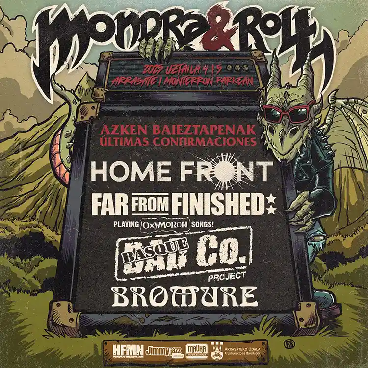Homefront, Bad Co. Project, Far From Finished y Bromure completan el cartel de la cuarta edición del Mondra & Roll, que tendrá lugar los días 4 y 5 de julio de 2025 en el Parque Monterrón (Arrasate, Gipuzkoa). Abonos a la venta la precio de 77 euros más gastos en https://www.musikaze.net