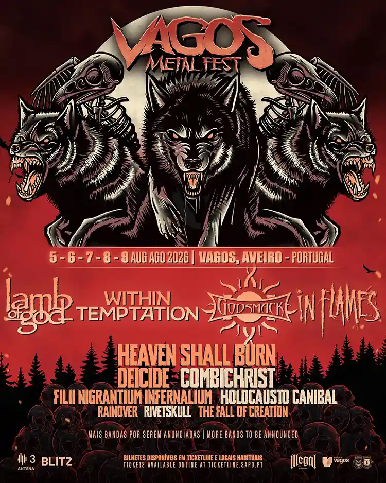 Lamb of God, Within Temptation, Filii Nigrantium Infernalium, Rainover, Rivetskull y The Fall of Creation son las nuevas incorporaciones al cartel de la próxima edición del Vagos Metal Fest, que se celebrará del 7 al 9 de agosto de 2026 en el Parque Municipal de Quinta do Ega (Vagos, Portugal). Abonos a la venta en https://ticketline.sapo.pt