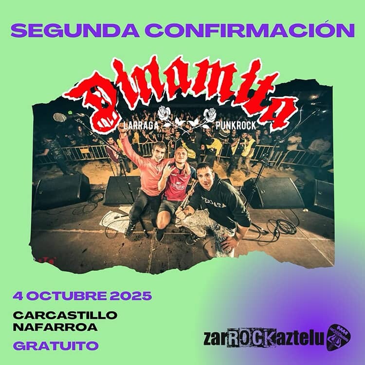 El 4 de octubre se celebrará la séptima edición del zarROCKaztelu en Carcastillo (Navarra), evento organizado por la asociación sin ánimo de lucro de zarROCKaztelu. Por el momento están confirmados Dinamita y Kaos Etíliko. Entrada gratuita. Previous Post Radiocrimen encabezará el Cuellar Rock Next Post Cartel de la duodécima edición del Ochandurock