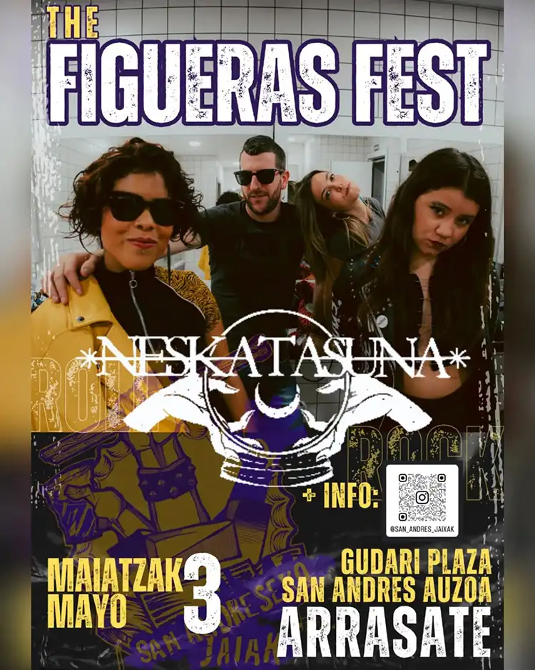 La tercera edición del The Figueras Rock se celebrará el 3 mayo en Gudari Plaza, Barrio San Andrés (Arrasate, Gipuzkoa). Hoy la organización ha dado a conocer dos bandas que participarán en la misma. Por un lado la banda de punk rock de Errepelega, Manifa y por otro lado la joven formación de punk rock de Azkoien, Neskatasuna.