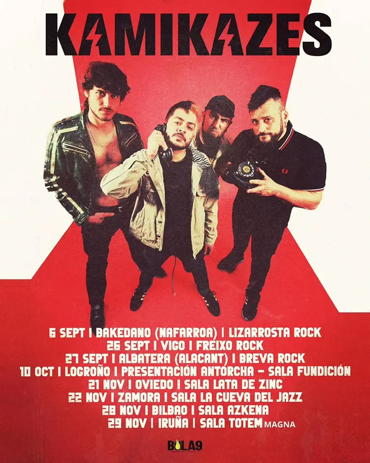 Los madrileños Kamikazes siguen subiendo en popularidad, con todo un arsenal de influencias excelentemente tratadas y con unainquebrantable actitud. Una formación muy entregada a sus directos, dejando una huella imborrable con ritmos de mucha energía, buen rollo, cercanía y unas letras directas que llegan a la gente. La formación ha anunciado hoy sus proximas descargas. Las podéis ver a continuación.
