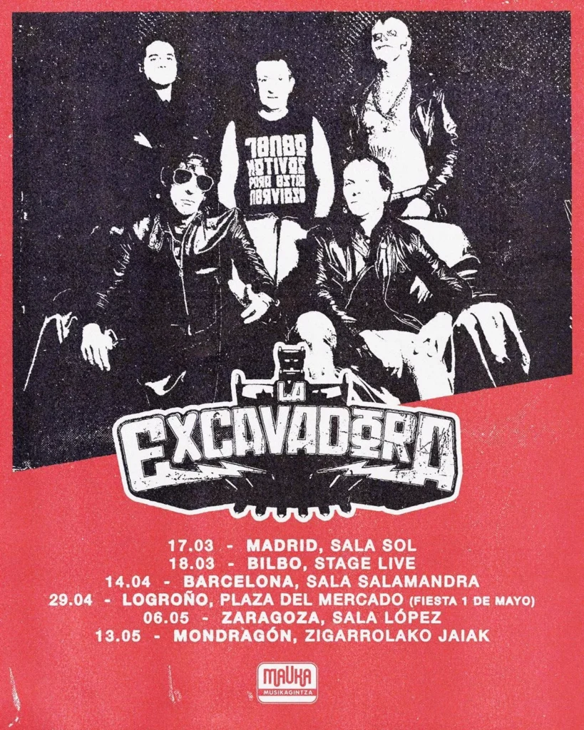 La Excavadora volverá a los escenarios a partir de mediados de marzo para presentar su segundo trabajo  «Todo Es Para Destruir», a la venta el 9 de marzo vía Mauka Music. Una colección de canciones con la vocación de convertirse en himnos para provocar la comunión perfecta en los directos entre grupo y público. Las primeras fechas son las siguientes: