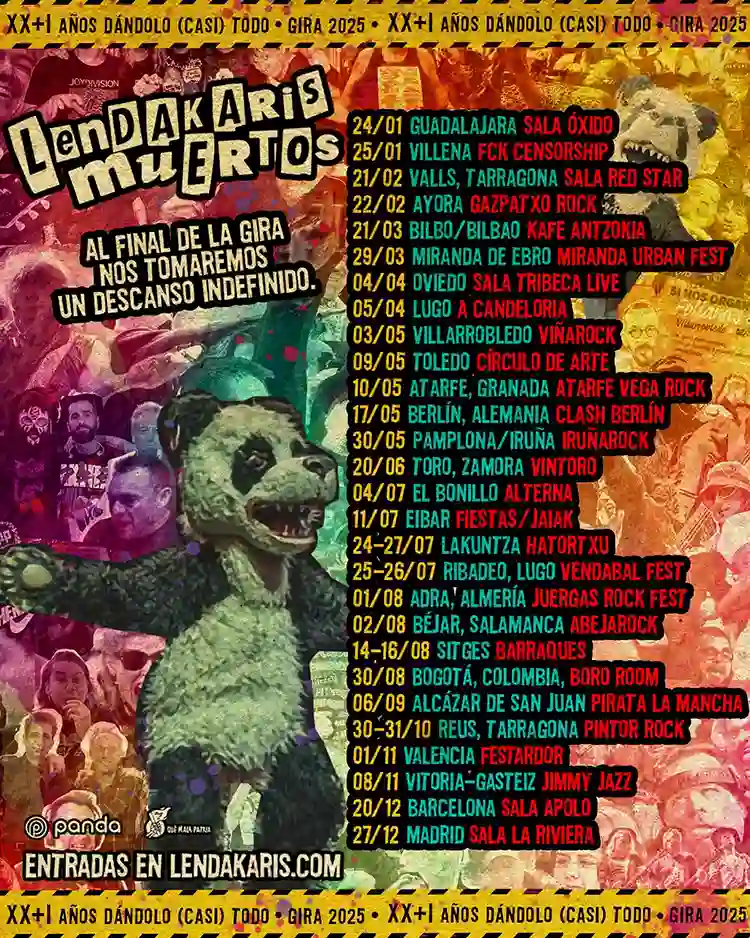 Los navarros Lendakaris Muertos siguen inmersos en su gira conmemorativa, celebrando sus 20 años de andadura musical y presentando su nuevo trabajo «Mucho Asco (casi) Todo». Os damos a conocer todas las fechas que tiene confirmadas a día de hoy.