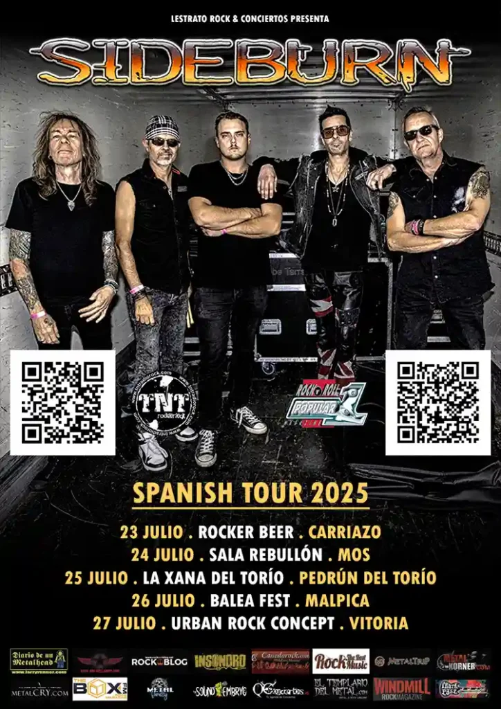 Los rockeros suizos de Sideburn sin duda conocen la receta del rock & roll, y no es casualidad que hayan impresionado a tanta gente en Hollywood como para incluir varios de sus temas en tráilers de películas y series. Pero su principal territorio sigue siendo el escenario, habiendo tocado con algunas de las bandas más importantes de la industria como Kiss, Motörhead, Def Leppard, Gotthard, Airbourne, Dio, Krokus, Ted Nugent, Thin Lizzy, Uriah Heep, Rose Tattoo, Doro, Y&T, Slade, entre otros, además de quince conciertos en la legendaria sala Z7 de Pratteln y una extensa programación de festivales.