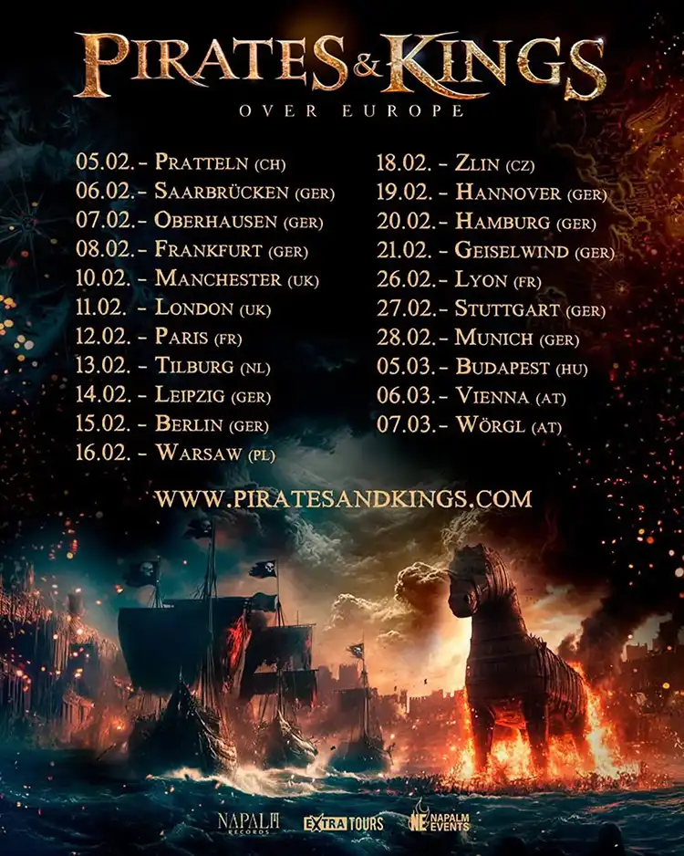 Esta obra maestra instrumental de metal pirata fue producida, mezclada y masterizada por Michele Guaitoli, vocalista de la banda. La impactante portada, obra del artista Peter Sallai, encaja a la perfección con la atmósfera cinematográfica del álbum. Hoy la banda ha estrenado el videoclip correspondiente al tema “Pirates & Kings”, dirigido Patrick Gutmann, que cuenta con la colaboración de los músicos de Warkings, con quienes llevarán a cabo su nueva gira europea.